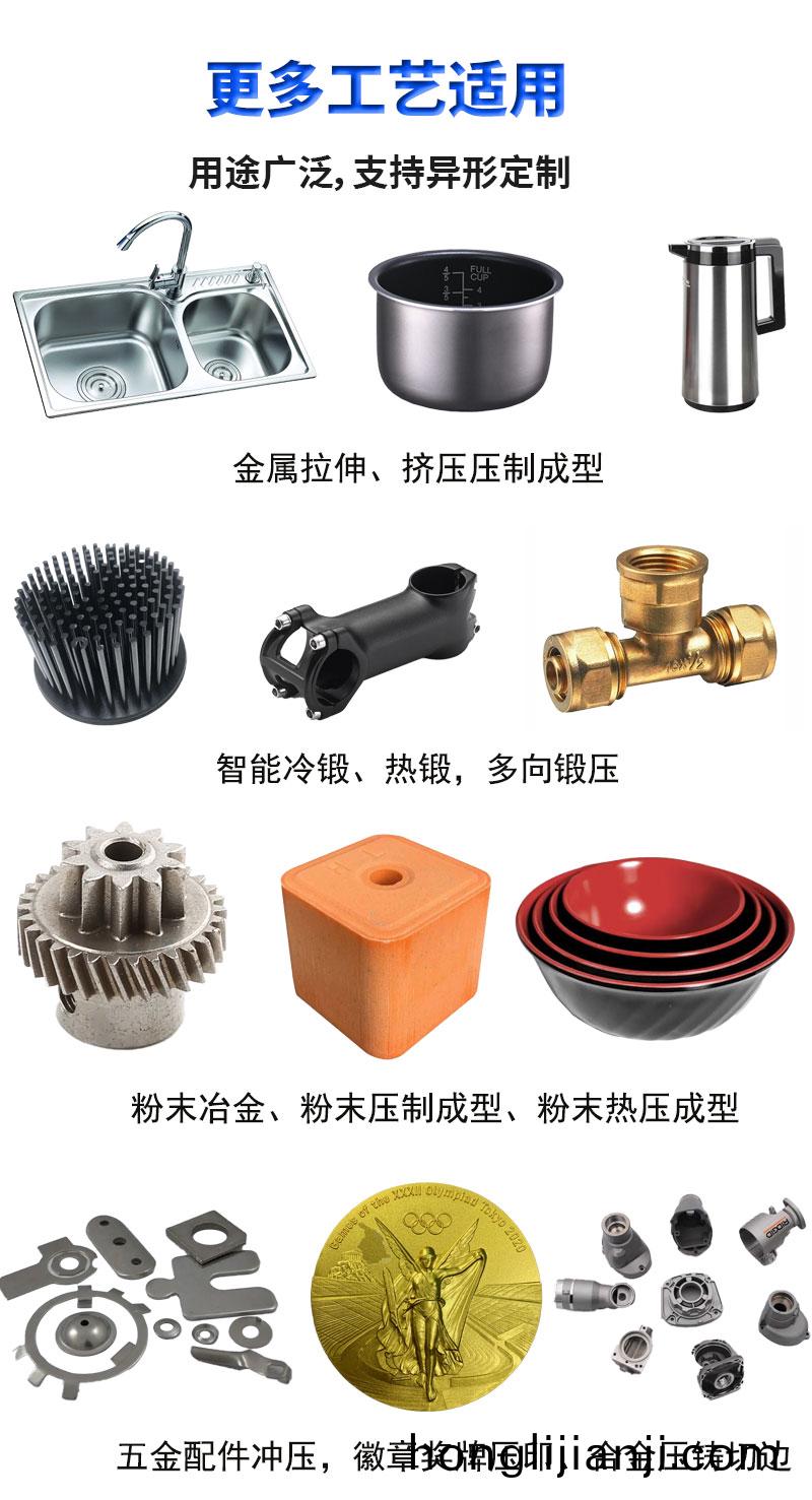 1.電器(qi)、燈(deng)飾、鍵身(shen)器材、蘤盒(he)配重(zhong)塊(kuai)等成型壓製工藝。2.適(shi)用(yong)于(yu)金屬非金(jin)屬(shu)材(cai)料(liao)成(cheng)型,配重(zhong)塊成(cheng)型,壓(ya)印(yin)等(deng)壓(ya)製工(gong)藝(yi)。1.品(pin)質(zhi)優:採用(yong)高(gao)強度優質圓鋼(gang),錶麵(mian)高(gao)頻(pin)加硬,研(yan)磨后(hou)電(dian)鍍,耐(nai)磨性好。2.傚(xiao)率高:活動闆(ban)下行(xing)