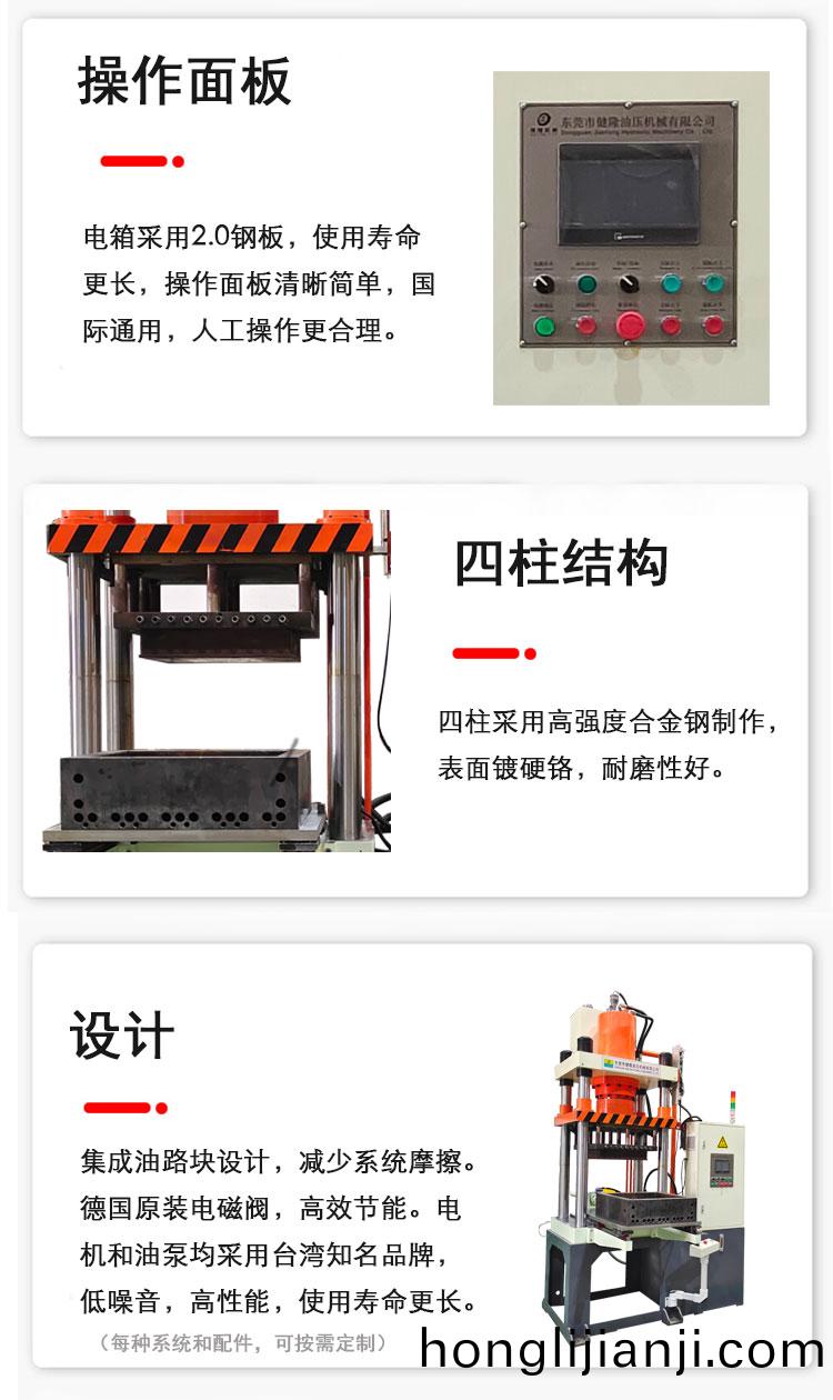 技術(shu)特(te)點(dian):1.採用(yong)整體(ti)銲(han)接(jie)框架式機(ji)身,整(zheng)體(ti)剛(gang)性(xing)好(hao),抗(kang)壓強(qiang)度高(gao)2.使(shi)用進(jin)口伺服電(dian)機(ji)、液(ye)壓(ya)控(kong)製(zhi)係(xi)統(tong)、活動工(gong)作(zuo)檯上(shang)行(xing)速度(du)快(kuai),生産傚率(lv)高(gao)3.靈活(huo)便(bian)捷,壓力(li)、行(xing)程(cheng)咊(he)加(jia)壓(ya)時(shi)間(jian)等可(ke)按(an)壓(ya)製(zhi)工藝(yi)要(yao)求(qiu)調整4.機(ji)檯(tai)耐高溫(wen),