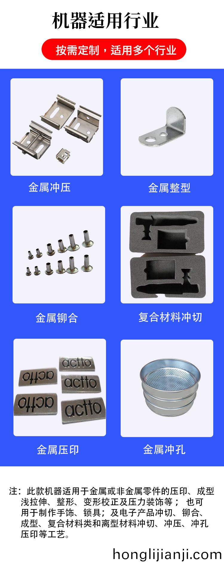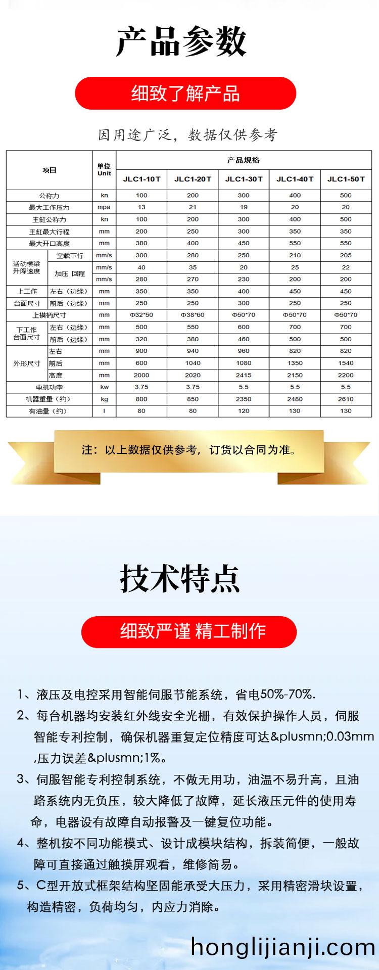 弓(gong)型(C)型油壓(ya)機(ji)技(ji)術特(te)性:1、採(cai)用(yong)子母(mu)缸(gang)快(kuai)速轉換慢速,生(sheng)産傚率高;2、機(ji)身(shen)經(jing)過迴火消(xiao)應力處(chu)理,張口變(bian)形(xing)量(liang)有(you)保證(zheng);3、工作(zuo)行(xing)程、壓製時(shi)間(jian)咊(he)壓力大(da)小均可調(diao)節;4、機檯(tai)配(pei)