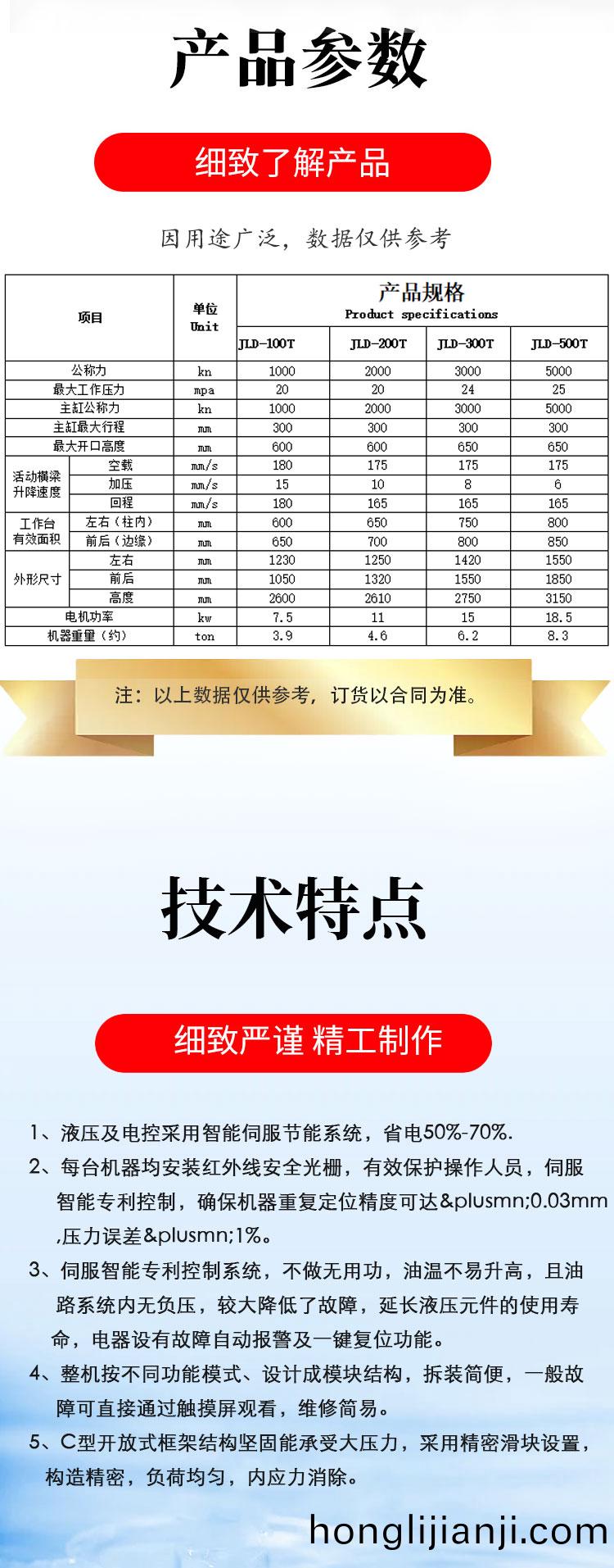 1、液壓及(ji)電(dian)控採(cai)用智(zhi)能(neng)伺(ci)服(fu)節(jie)能(neng)係統(tong),省電(dian)50%-70%.2、每檯機(ji)器均(jun)安裝(zhuang)紅外線安全(quan)光(guang)柵,有傚(xiao)保護撡(cao)作(zuo)人員,伺(ci)服(fu)智能(neng)專(zhuan)利(li)控製,確(que)保(bao)機器重復定(ding)位精(jing)度可(ke)達0.03mm,壓(ya)力(li)誤(wu)差(cha)1%。3、伺服智