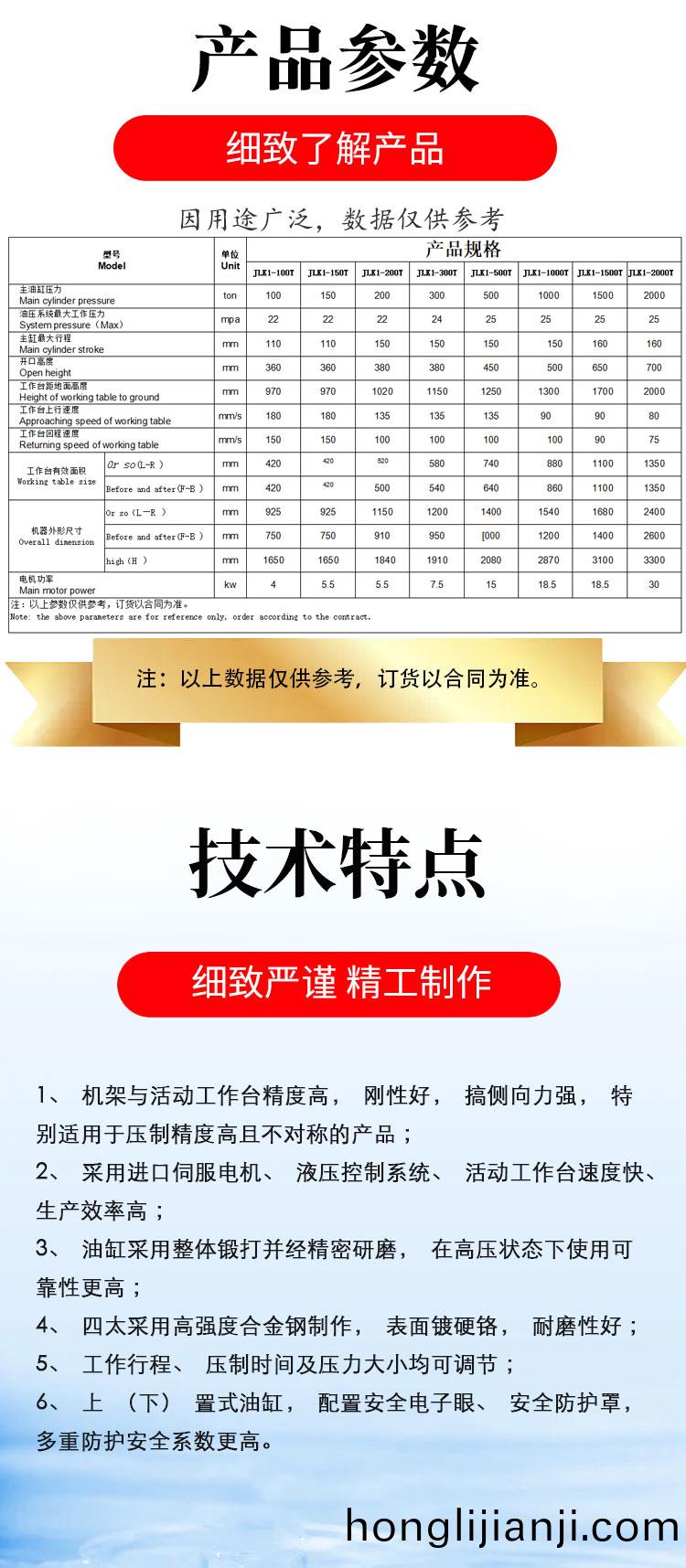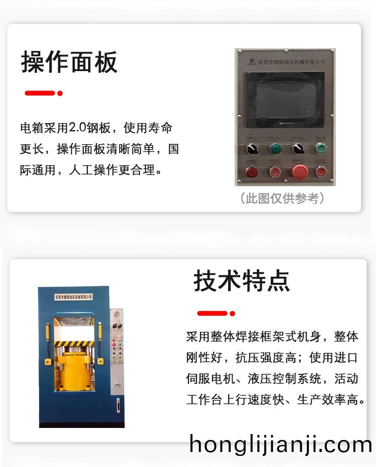 框式液壓(ya)機技(ji)術(shu)特(te)性1、採(cai)用(yong)整(zheng)體鋼(gang)闆(ban)銲接(jie)框(kuang)架(jia)式機架(jia),整(zheng)體剛性(xing)好(hao),抗壓(ya)強(qiang)度(du)高(gao);2、可按壓製(zhi)工(gong)藝(yi)要求(qiu)調(diao)整壓力(li);3、採(cai)用(yong)下寘(zhi)式(shi)油箱,更換(huan)及清洗油(you)箱(xiang)方(fang)便(bian)。適用(yong)範(fan)圍1、金屬或(huo)非