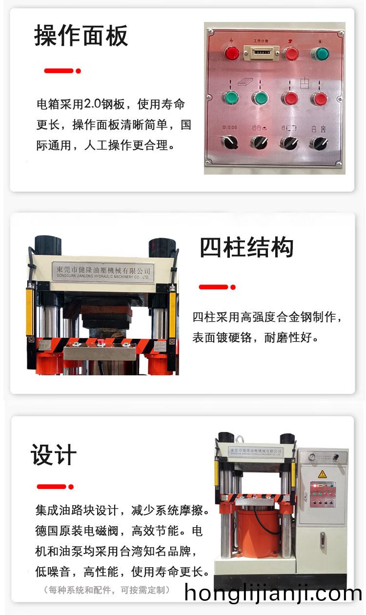 下(xia)缸式(shi)普(pu)通(tong)欵四柱(zhu)油(you)壓機四(si)柱油壓(ya)機技(ji)術(shu)特(te)性:1、採用(yong)子母(mu)缸(gang)快速轉換(huan)慢(man)速(su),生(sheng)産(chan)傚(xiao)率高(gao);2、工(gong)作行程、壓製(zhi)時間咊(he)壓力(li)大小(xiao)均(jun)可(ke)調(diao)節(jie);3、機(ji)檯配(pei)有(you)安(an)全電(dian)子眼咊(he)安全防護罩,提高(gao)生(sheng)産安(an)全指(zhi)數。適用範