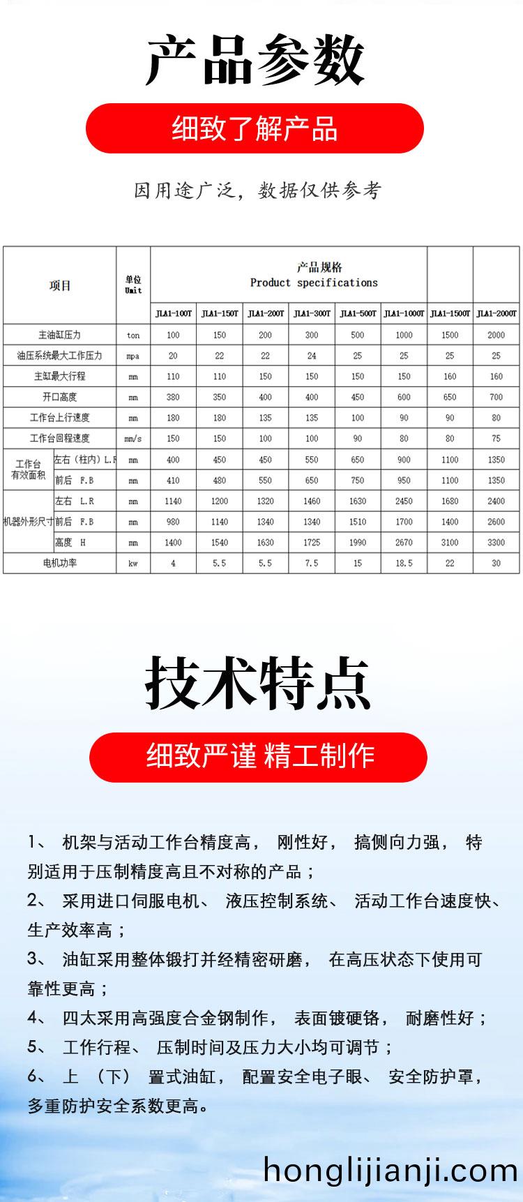 500噸伺服下四(si)柱(zhu)油壓(ya)機四柱(zhu)油壓(ya)機技術特(te)性(xing):1、採用(yong)子母(mu)缸(gang)快(kuai)速(su)轉換慢速(su),生(sheng)産傚率(lv)高;2、工(gong)作(zuo)行程、壓(ya)製(zhi)時間(jian)咊(he)壓(ya)力(li)大小均可(ke)調(diao)節(jie);3、機(ji)檯配(pei)有(you)安(an)全(quan)電子(zi)眼咊安全(quan)防(fang)護(hu)罩,提(ti)高(gao)生(sheng)産安全指(zhi)數。適(shi)用(yong)範(fan)